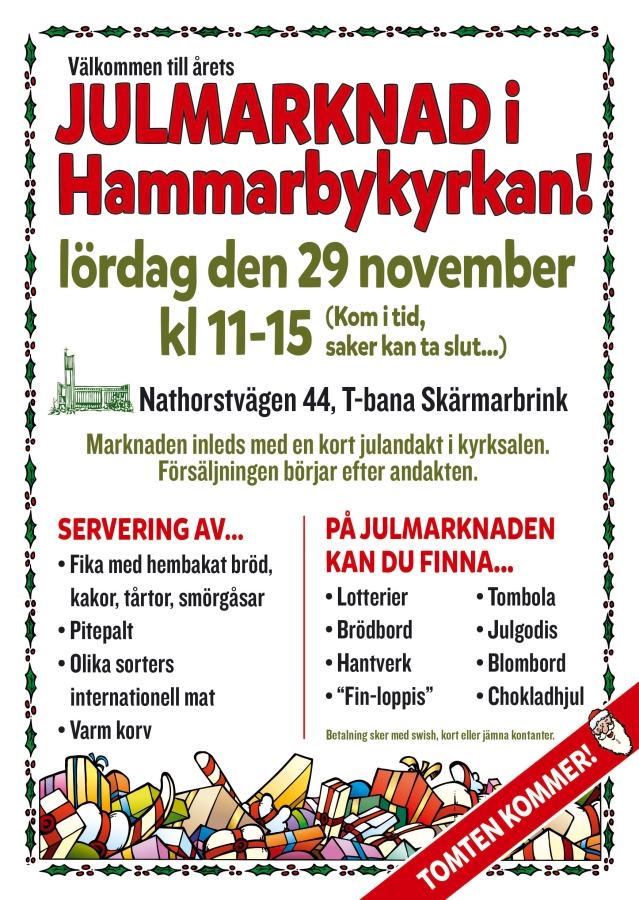 Varmt välkommen till Hammarbykyrkans årliga julmarknad lördagen 29/11!