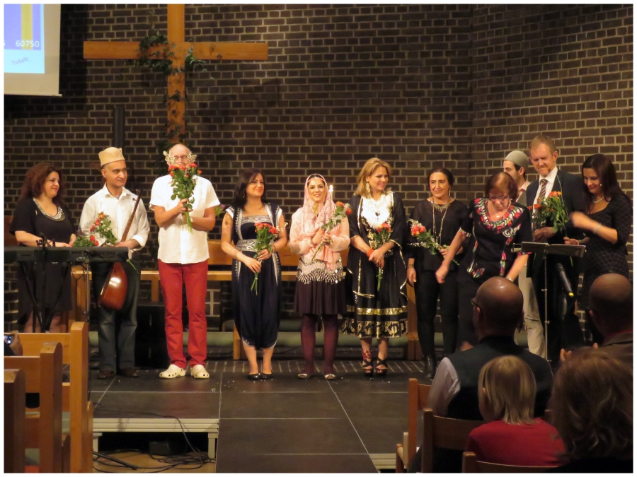 Galan bjöd sedan på sång, musik och dans, varvad med presentationer av kvällens insamlingsprojekt. Erik Johansson, som är EFS riks ansvarige för det internationella arbetet, presenterade dels ett projekt för ungdomsledarutbildning i Mekane Yesus-kyrkan i Etiopien, dels ett projekt gällande utbildning och diakoni bland utsatta barn i Mwanza i Tanzania. Annahita Parsan, vår farsitalande präst i Hammarbykyrkan, berättade om det tredje insamlingsprojektet för dagen – det diakonala arbetet bland perser i Hammarbykyrkan. Medlemmar ur den persiska gruppen medverkade alltså också själva med medryckande persiskt musik, sång och dans under galan.