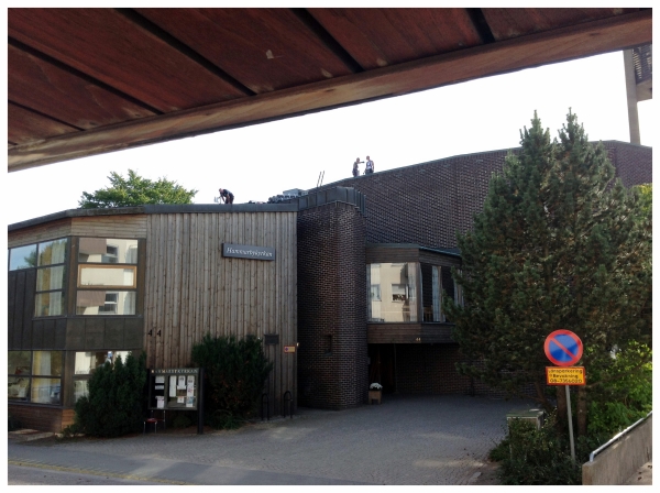 Just nu håller ett gäng byggjobbare på att byta ut papptaket på kyrkobyggnaden. Vi hoppas att riskerna för droppande vatten från taket i kyrksalen därmed elimineras. Sådana incidenter har av och till hänt de senaste åren. Men nu bör de blir ett minne blott.